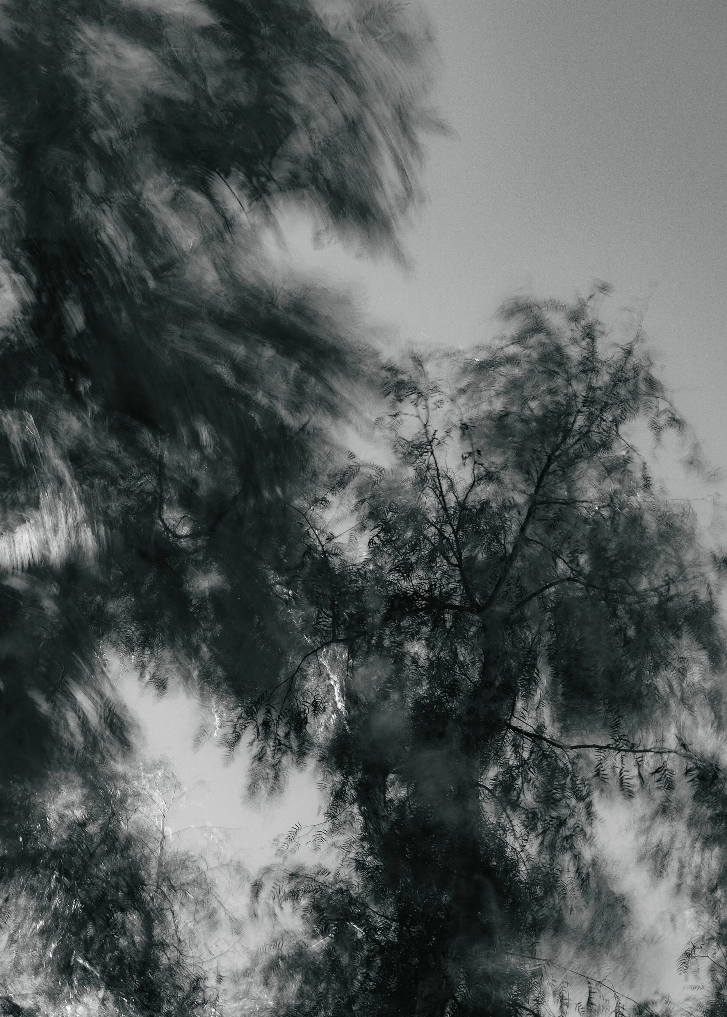 But what I love most about this series, is how the moving leaves look in all the images as a result of this spontaneous shoot. It looks like paintbrush strokes, and it felt like I painted with my camera. I achieved this look by using an ND filter on my Fujifilm X100V, which has the setting built in. Using that, a slow shutter speed, a tripod, and some patience, I was able to capture most of the branches moving in the wind, and any still parts remain clear.